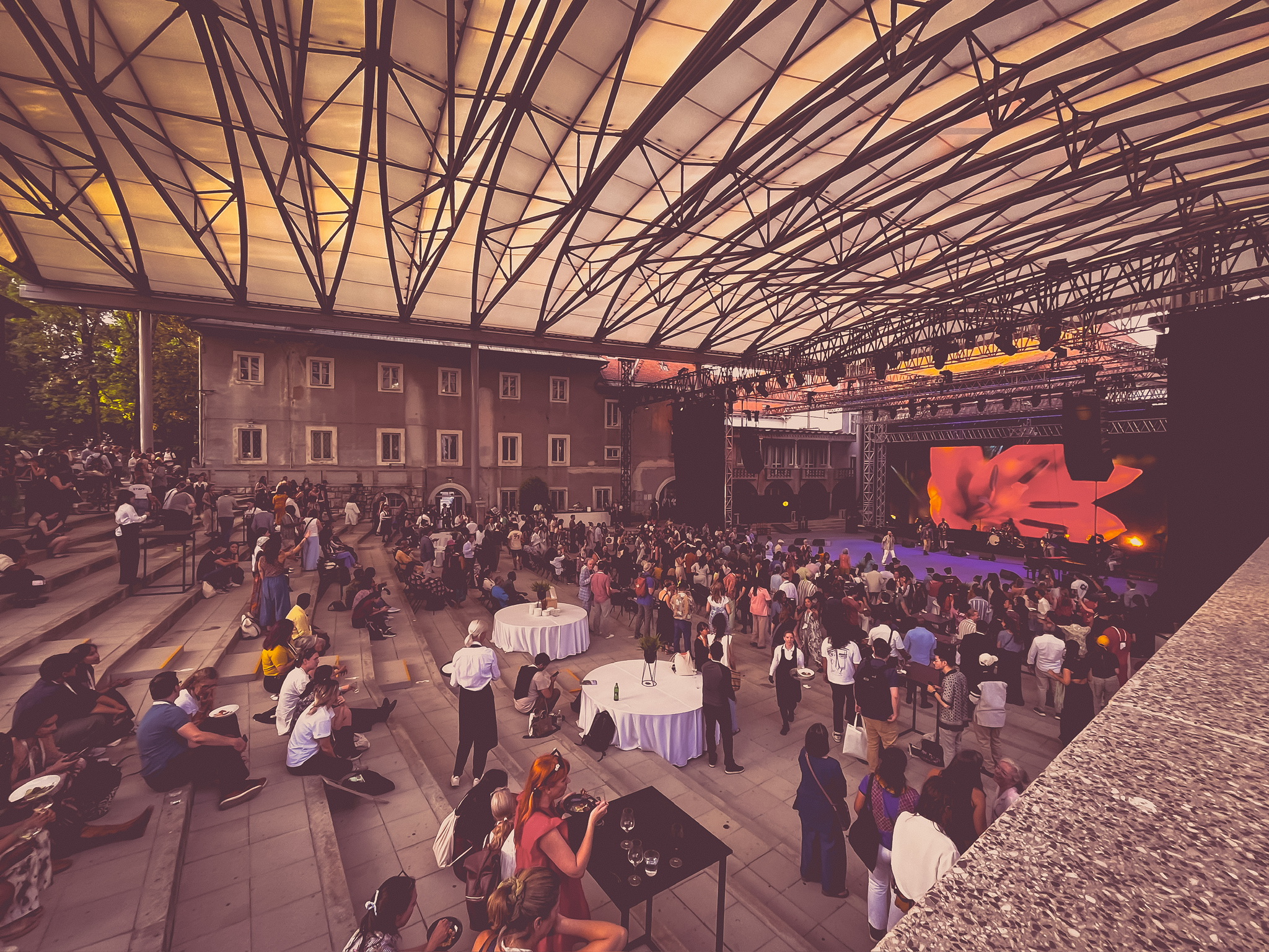 For The Hearth Summit in Ljubljana, Slovenia, we worked with The Wellbeing Project and Forum Europe to design, deliver, and manage event spaces at Cankarjev Dom, Krizanke Open Air Theatre, and Ljubljana Castle. The summit brought together over 800 global changemakers to explore social and ecological challenges through workshops, artistic sessions, and creative experiences. Ljubljana’s cultural richness and focus on sustainability provided the perfect backdrop for this gathering.